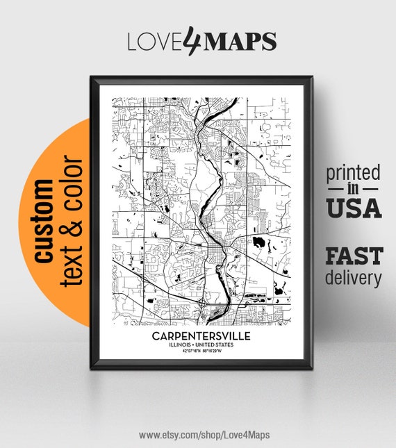 Carpentersville Illinois Map, Carpentersville City Print